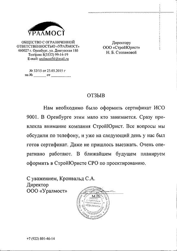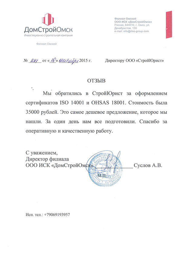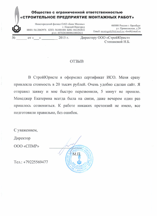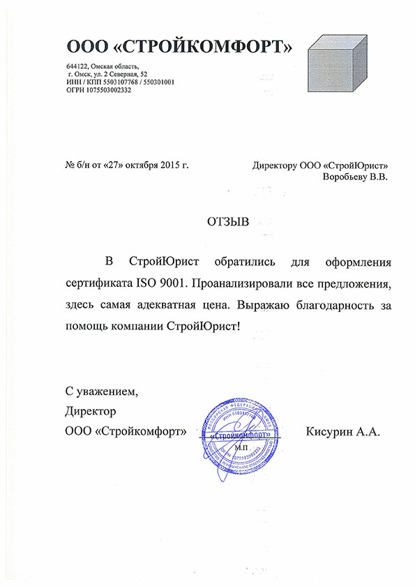 Отзывы клиентов "СтройЮрист" по ISO в Колпино