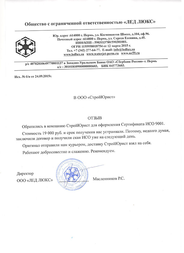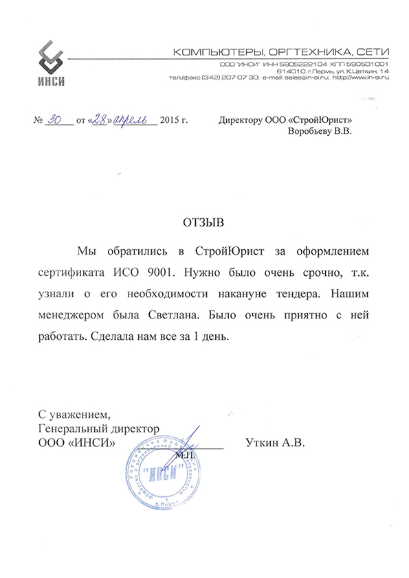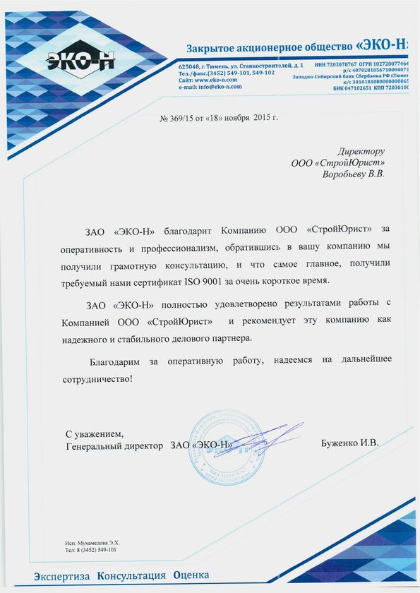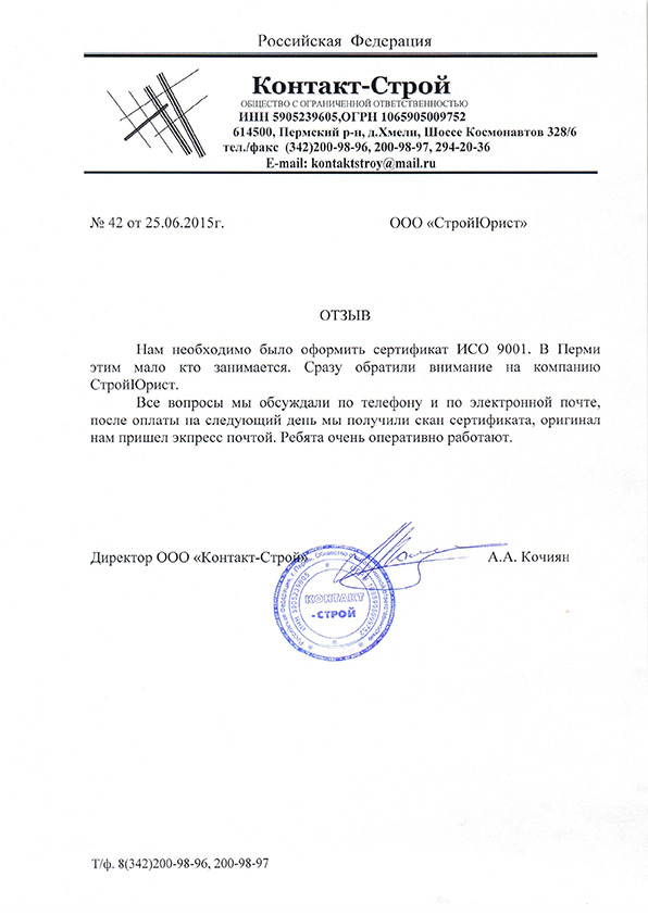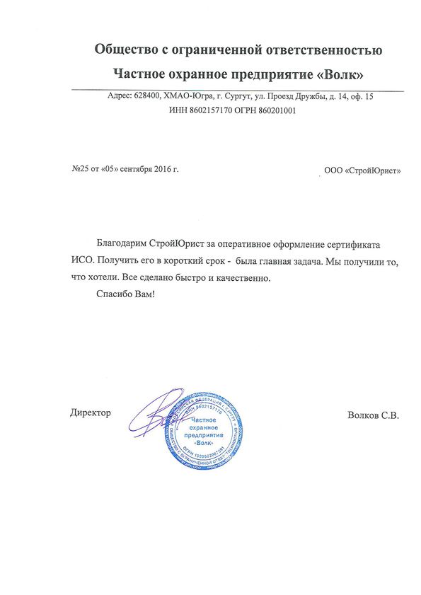 Отзывы клиентов "СтройЮрист" по ISO в Колпино