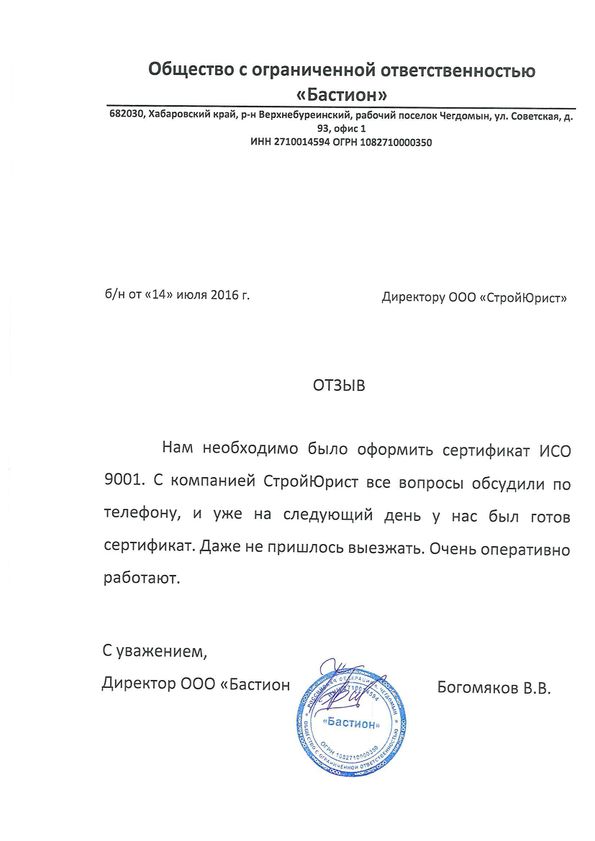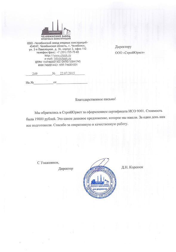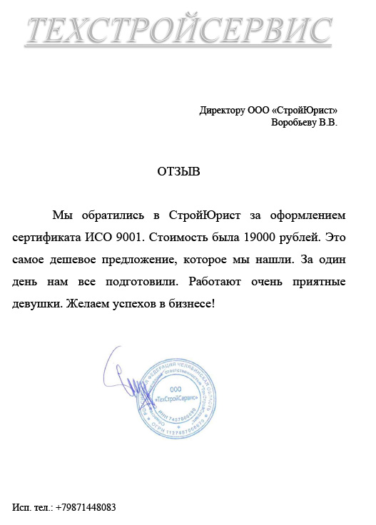 Отзывы клиентов "СтройЮрист" по ISO в Колпино