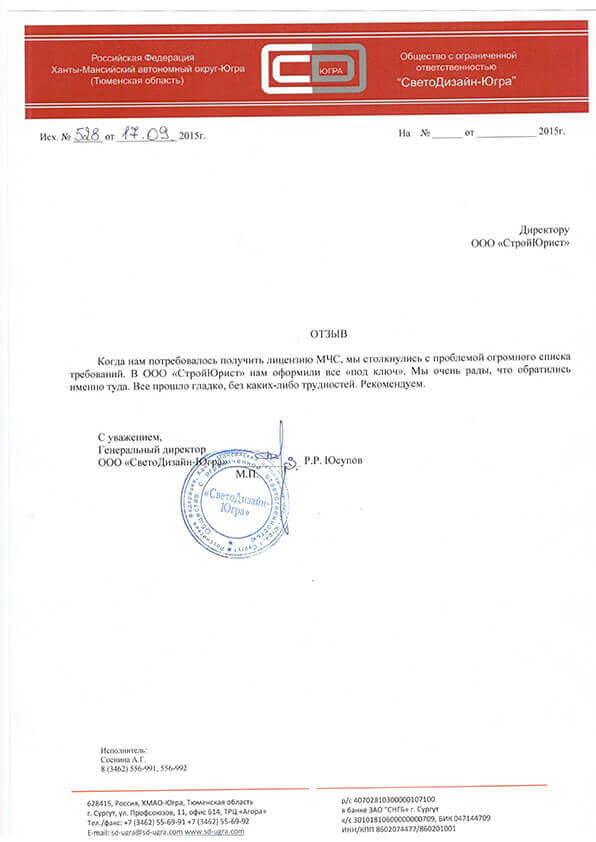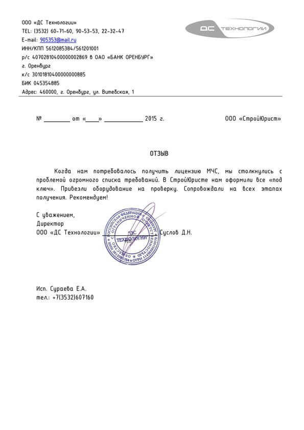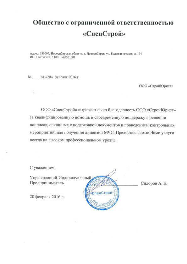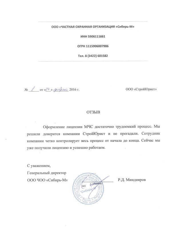 Отзывы клиентов "СтройЮрист" по лицензированию МЧС в Колпино