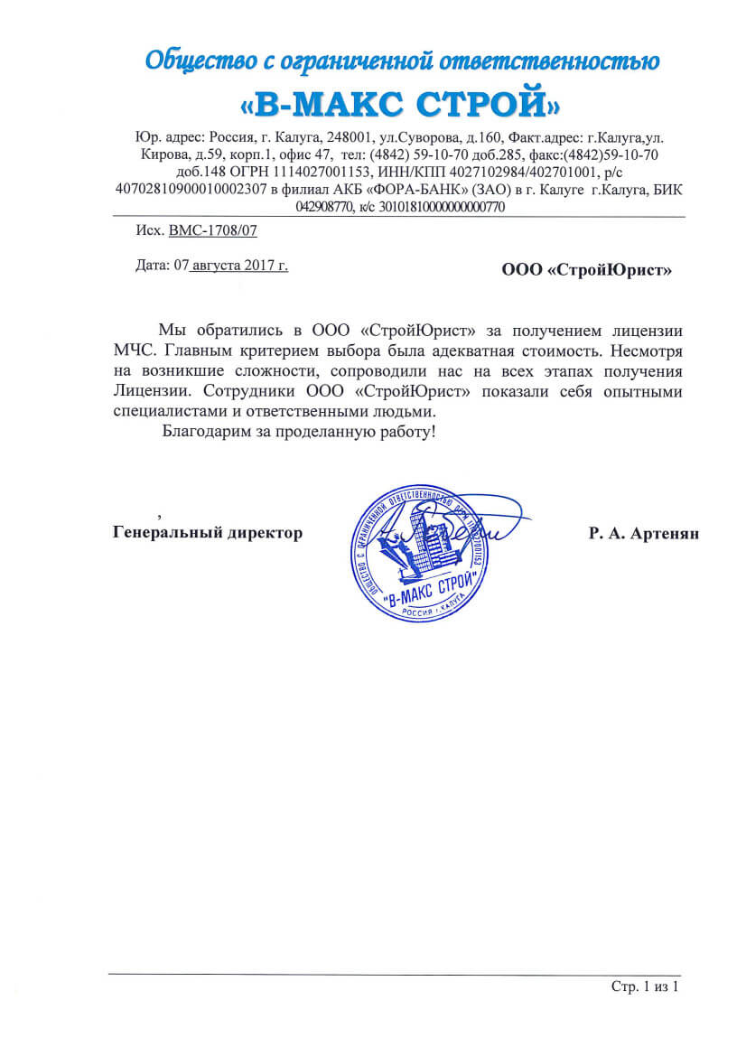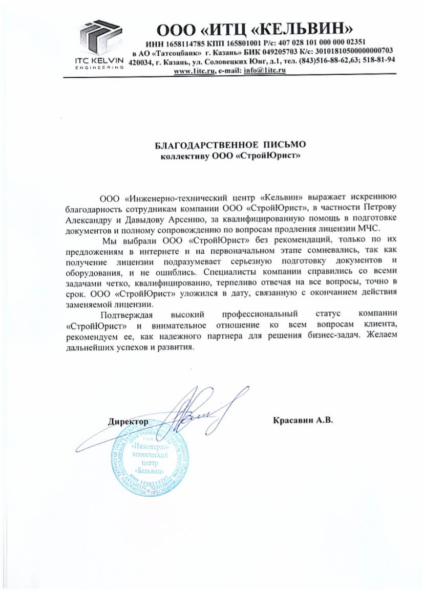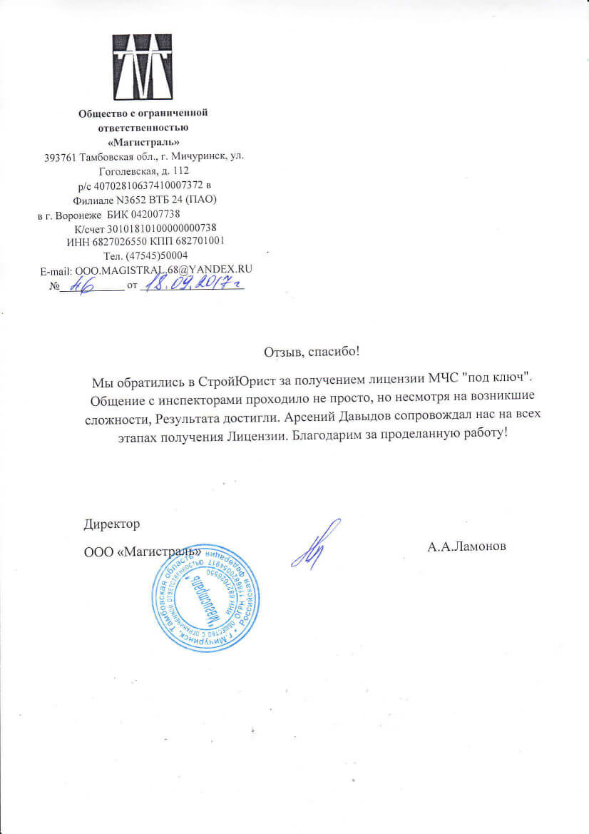 Отзывы клиентов "СтройЮрист" по лицензированию МЧС в Колпино
