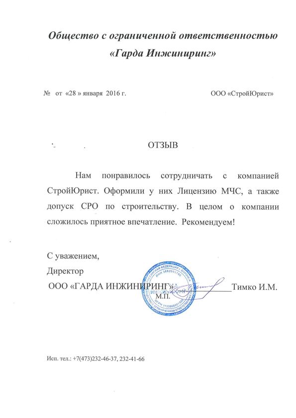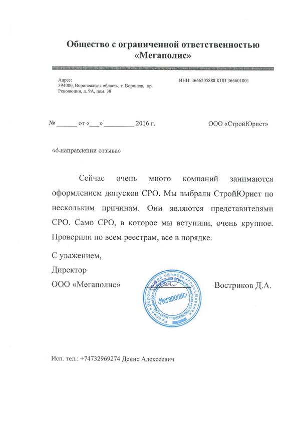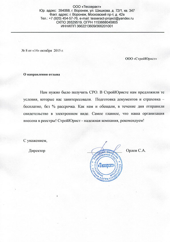 Отзывы клиентов "СтройЮрист" по вступлению в СРО в Колпино