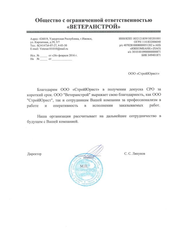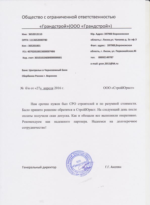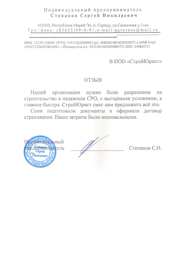 Отзывы клиентов "СтройЮрист" по вступлению в СРО в Колпино