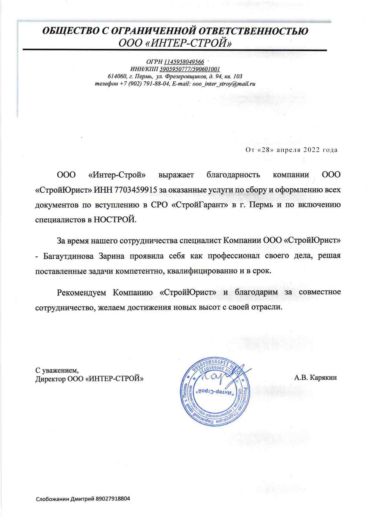 Отзывы клиентов "СтройЮрист" по вступлению в СРО в Колпино