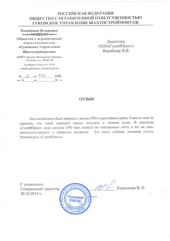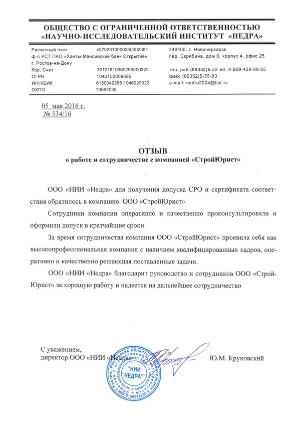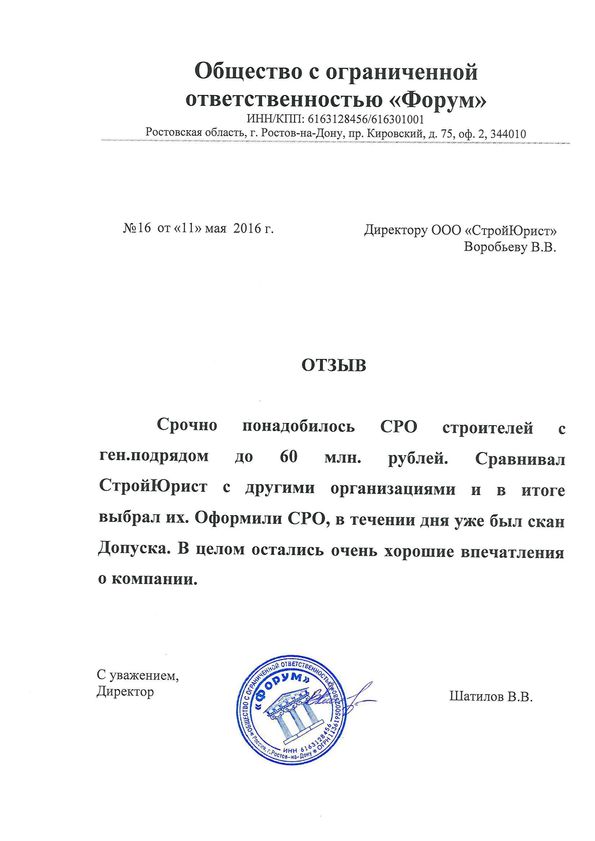 Отзывы клиентов "СтройЮрист" по вступлению в СРО в Колпино