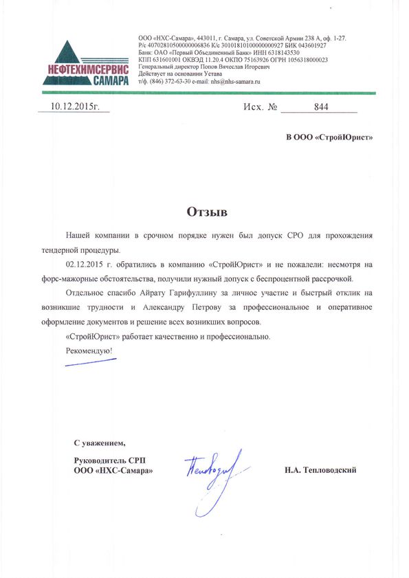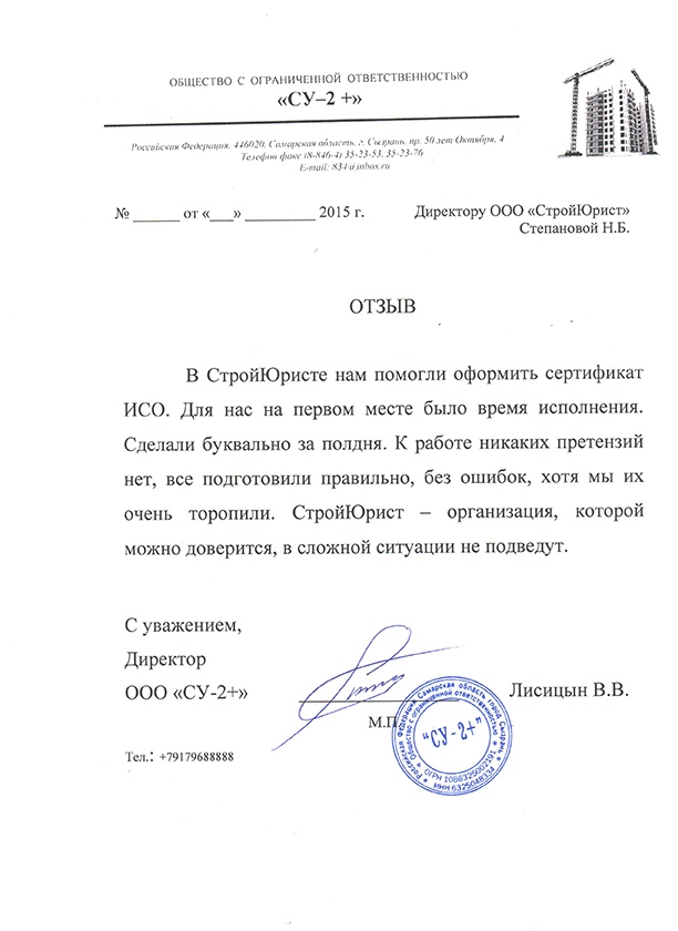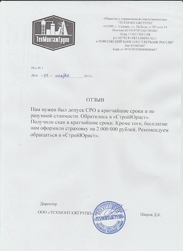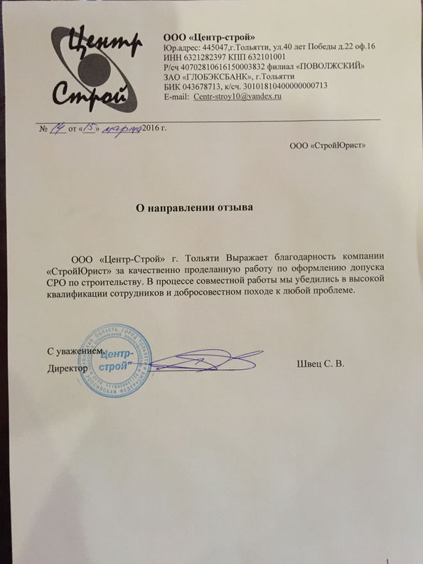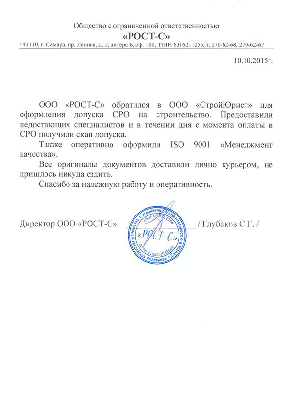 Отзывы клиентов "СтройЮрист" по вступлению в СРО в Колпино