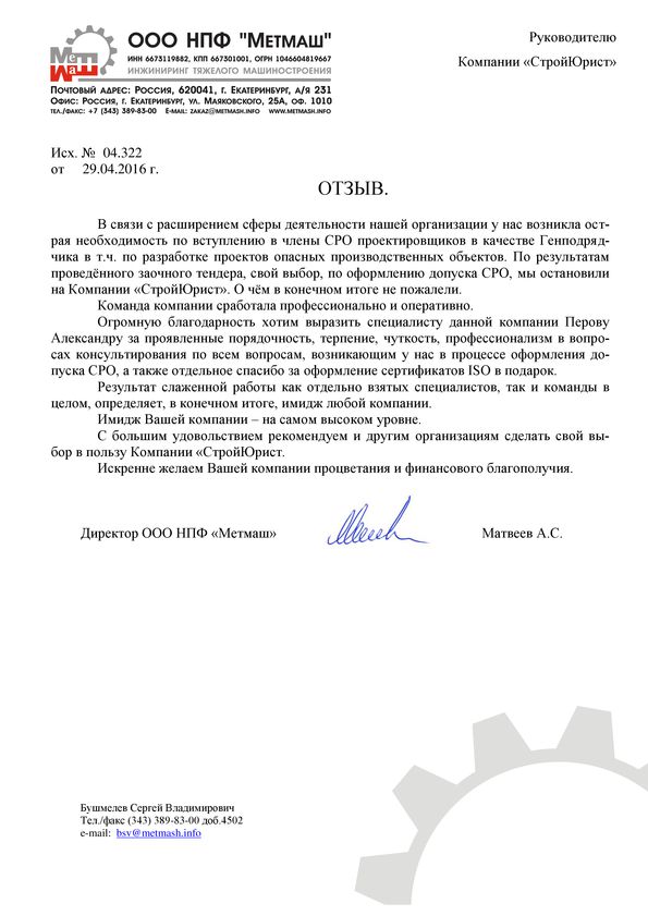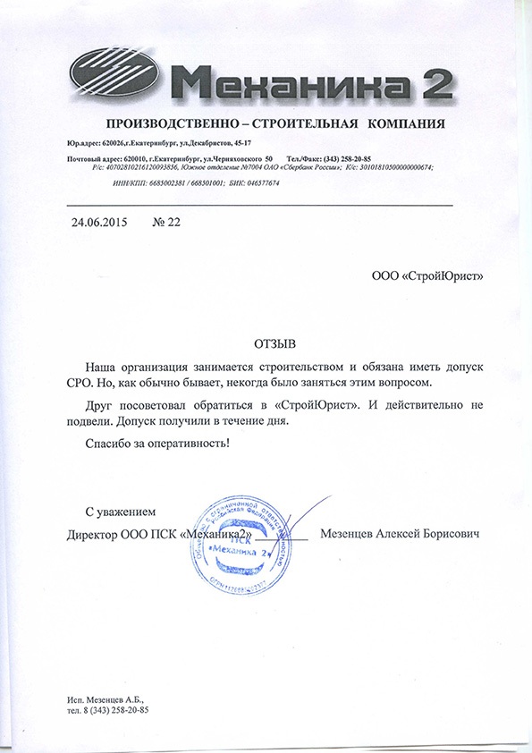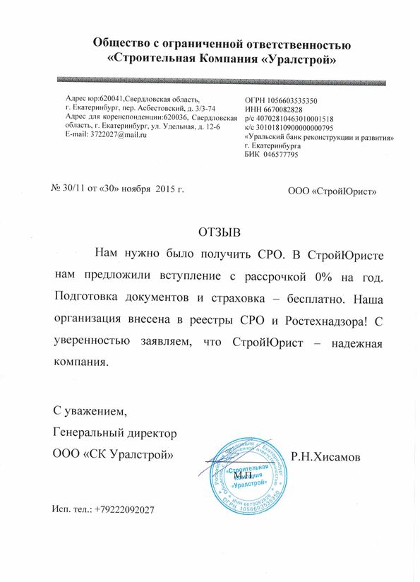 Отзывы клиентов "СтройЮрист" по вступлению в СРО в Колпино