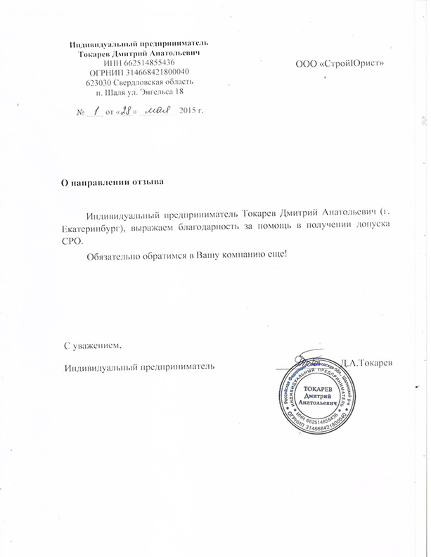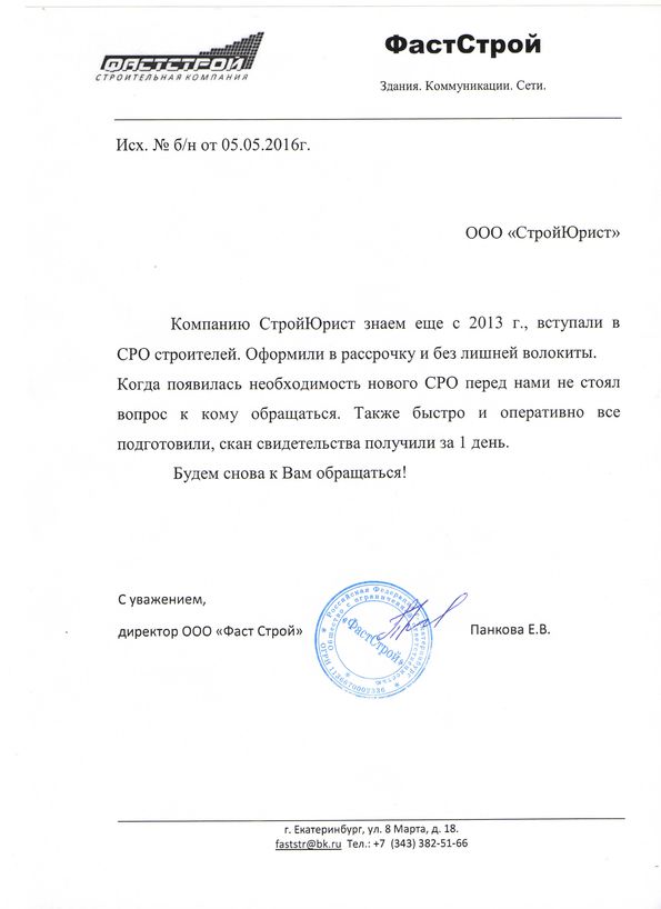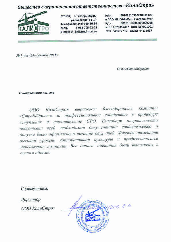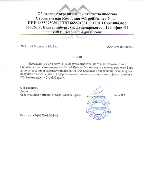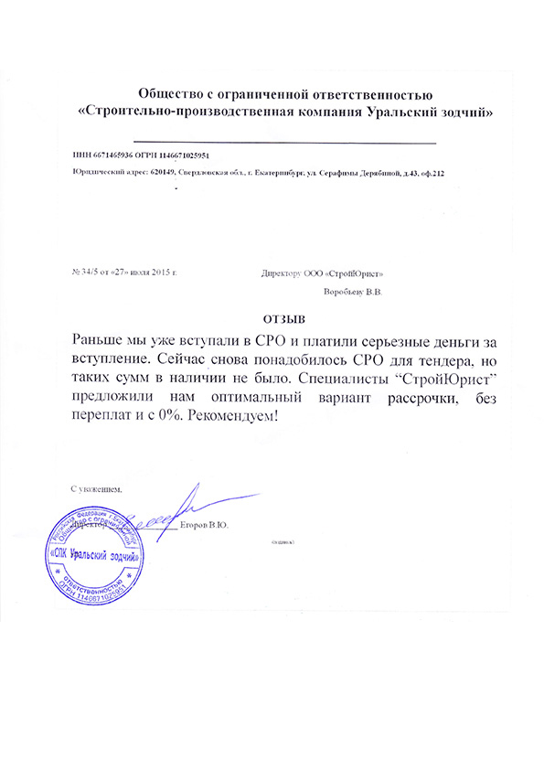 Отзывы клиентов "СтройЮрист" по вступлению в СРО в Колпино