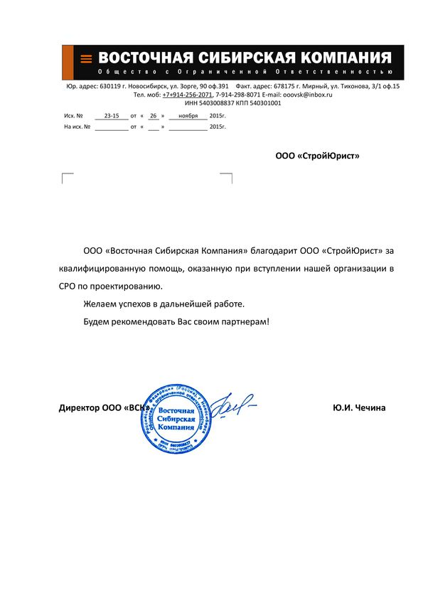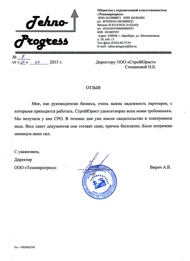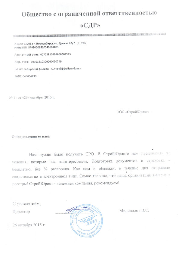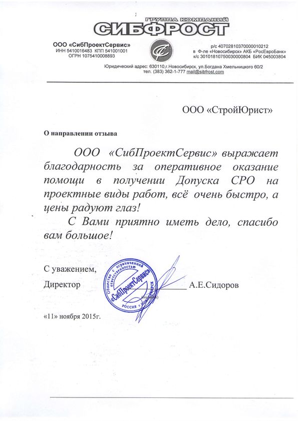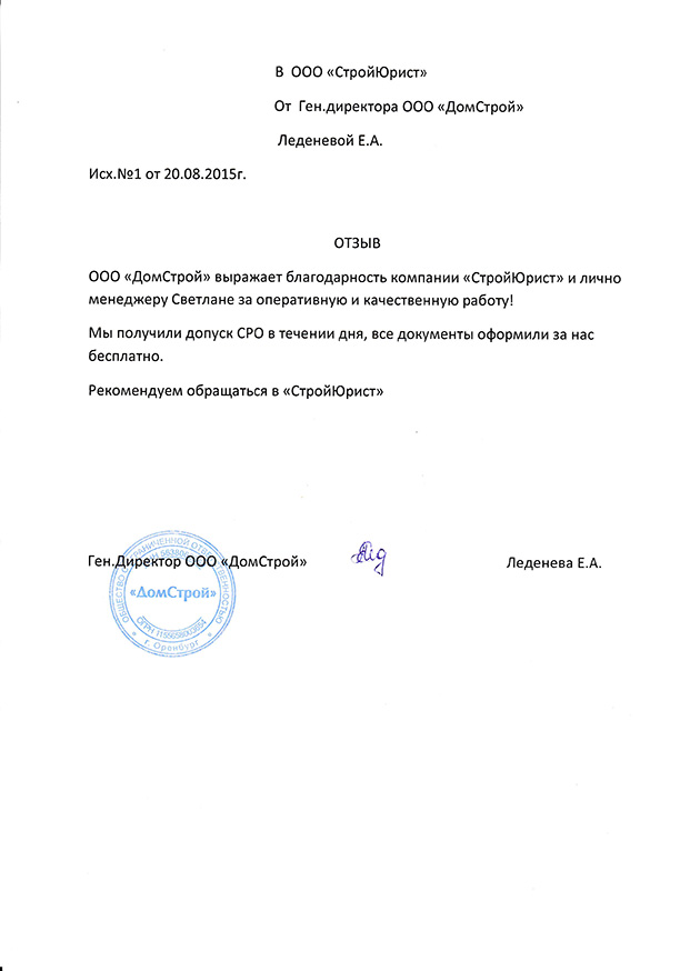Отзывы клиентов "СтройЮрист" по вступлению в СРО в Колпино