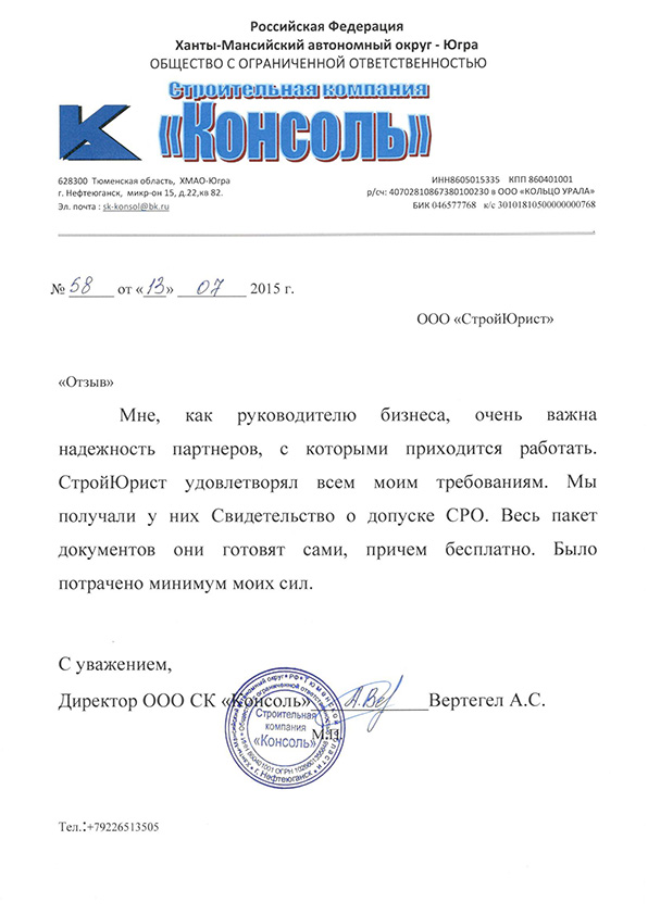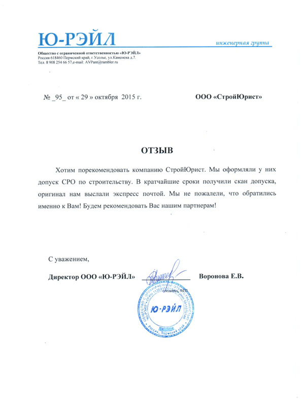 Отзывы клиентов "СтройЮрист" по вступлению в СРО в Колпино