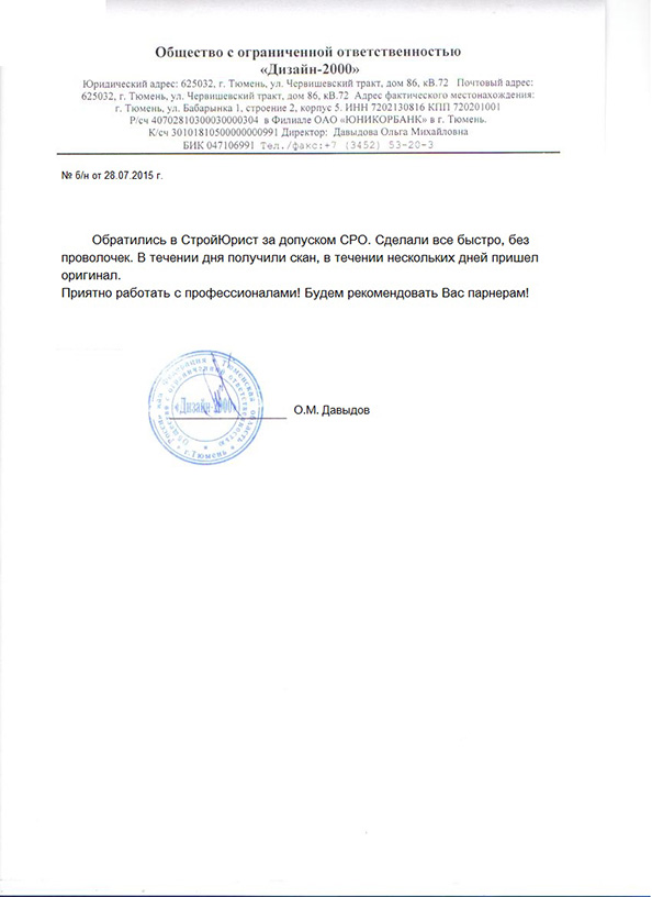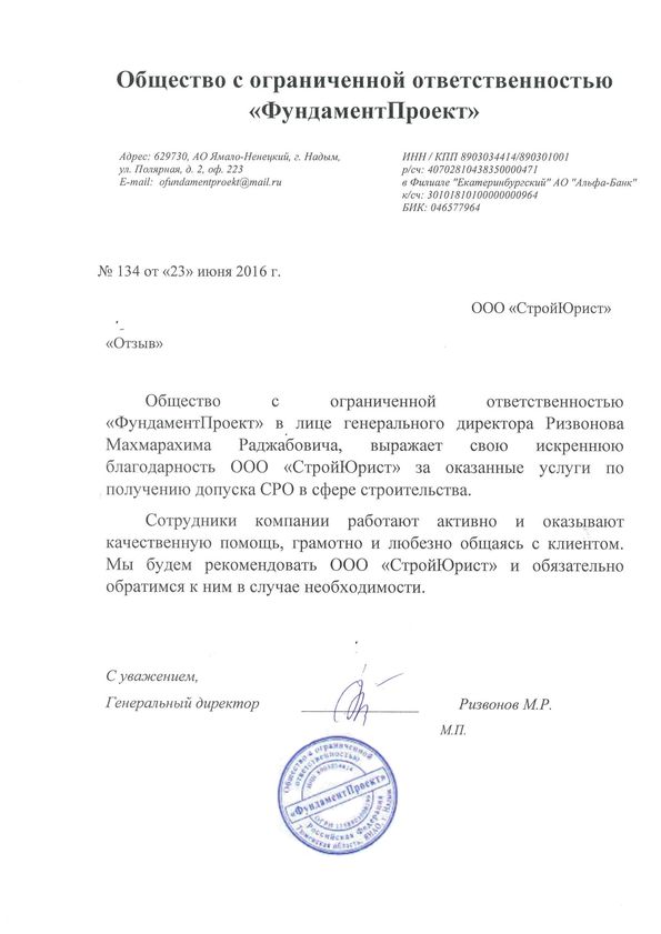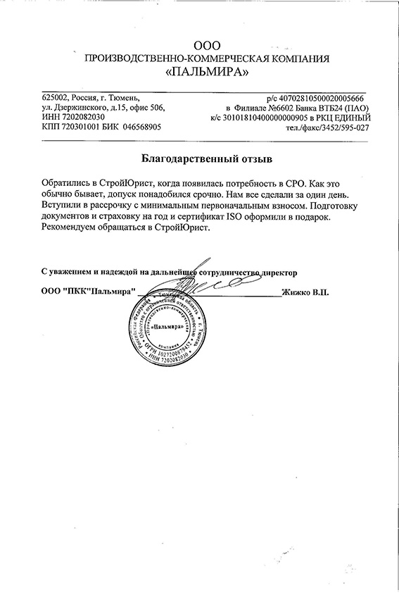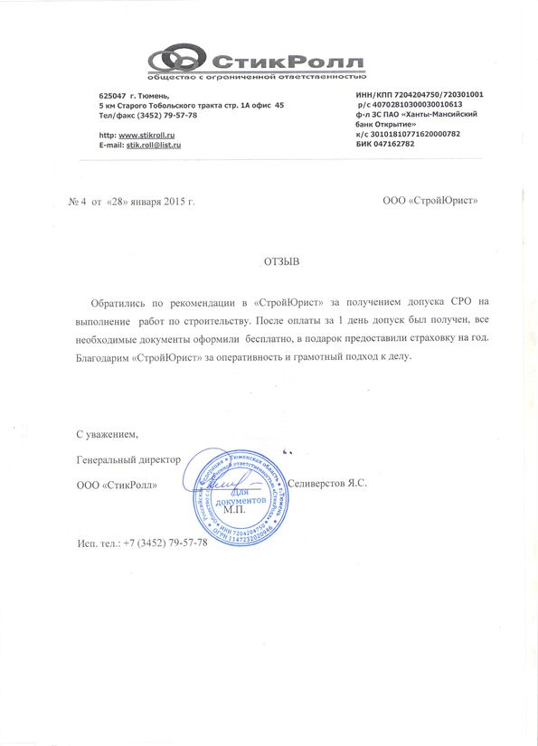 Отзывы клиентов "СтройЮрист" по вступлению в СРО в Колпино